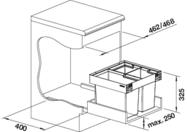 Einbauhöhe 325 mm über dem Schubladenboden, Einbautiefe 400 mm (Schubladeninnenmaß)