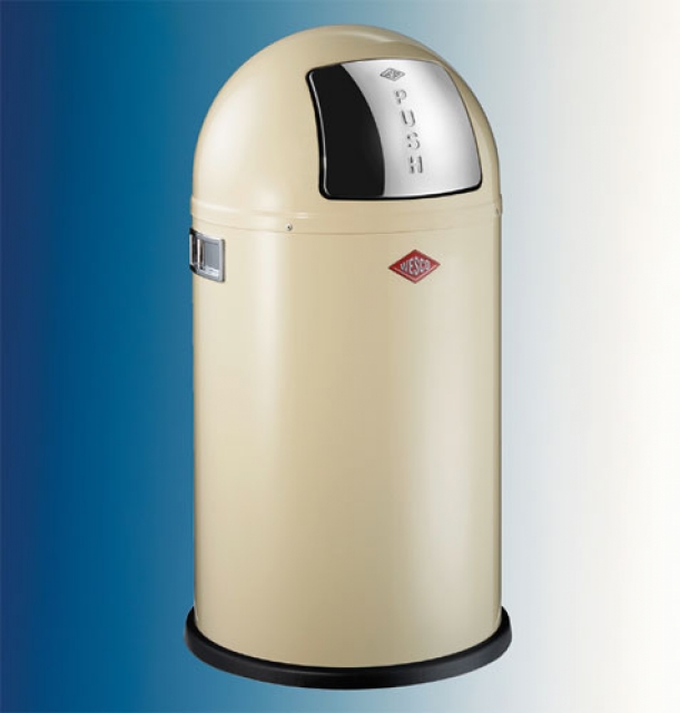 Abfallbehälter im klassischen Design, der sich nicht einfach in die Ecke schieben lässt.