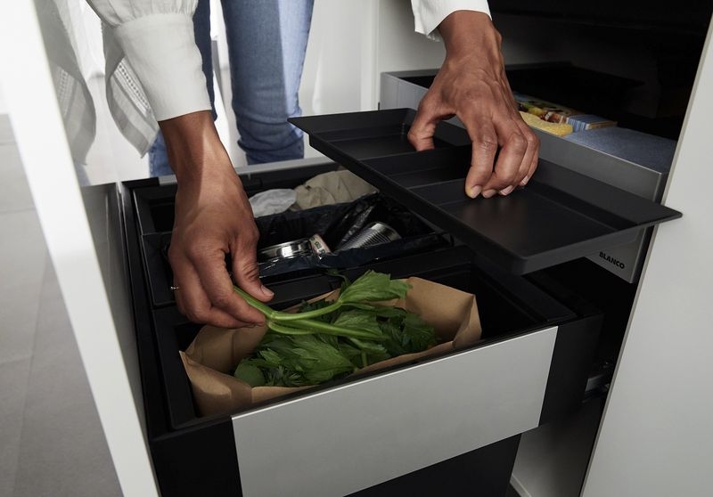 Blancoaxia III 6 S Silgranit PuraDur Einbauspüle, Farbe schwarz, Glasschneidbrett weiss, Becken rechts, Ablaufsystem InFino® mit Drehbetätigung, 525850