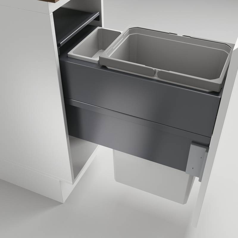 • Abfallsammler Frontauszugsystem für großes Abfallvolumen mit Softeinzug und Anschlagdämpfung