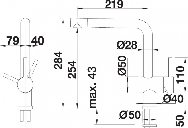 • Hoher Auslauf für leichtes Befüllen von Töpfen und Vasen