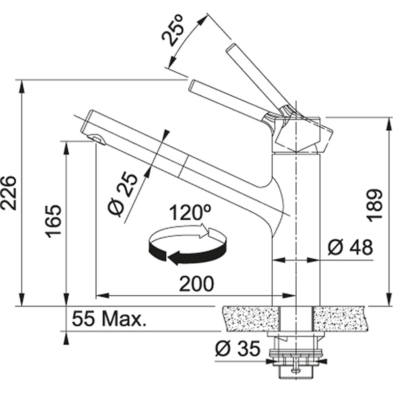 Schwenkbereich 120°