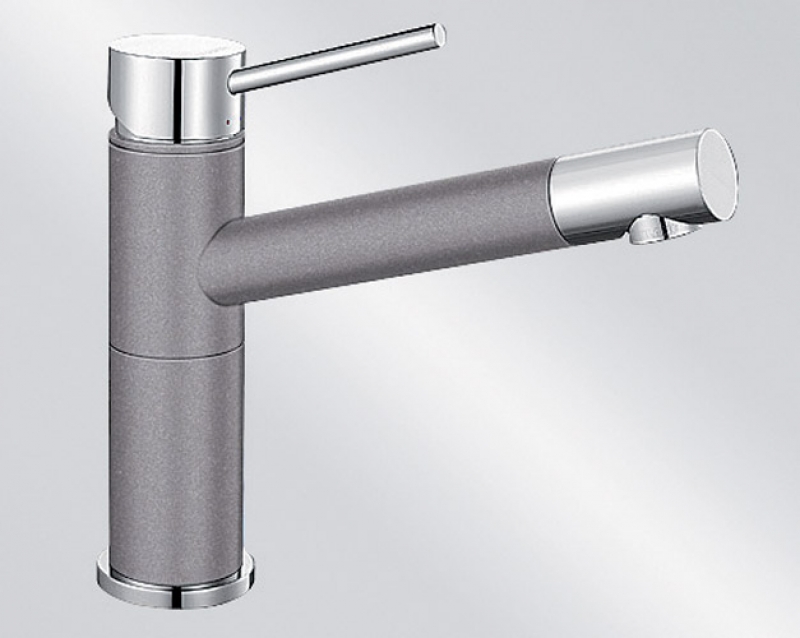 BLANCOALTA Compact Silgranit-Look, 2-farbig, Hochdruck, Festauslauf, Farbe alumetallic/chrom