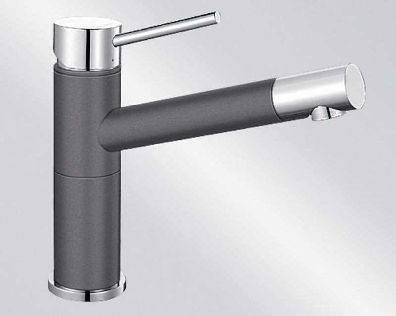 BLANCOALTA Compact Silgranit-Look, 2-farbig, Hochdruck, Festauslauf, Farbe felsgrau/chrom