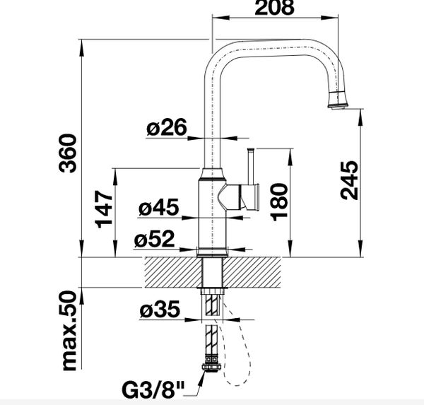 Hahnlochbohrung mit Ø 35mm erforderlich