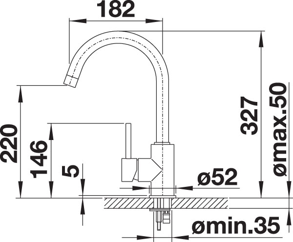 • Hahnlochbohrung mit Ø 35 mm erforderlich