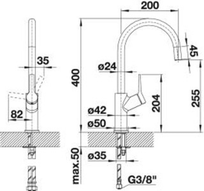 Hahnlochbohrung mit Ø 35 mm erforderlich