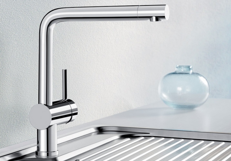 Blancolanora-S Edelstahl gebürstet, Hochdruck, herausziehbare Schlauchbrause, Auslauf schwenkbar