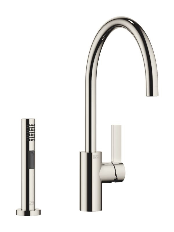 Dornbracht Tara Ultra Einhebelmischer + Spülbrausegarnitur, Hochdruck, Platin, 33826875-08+27721970-08