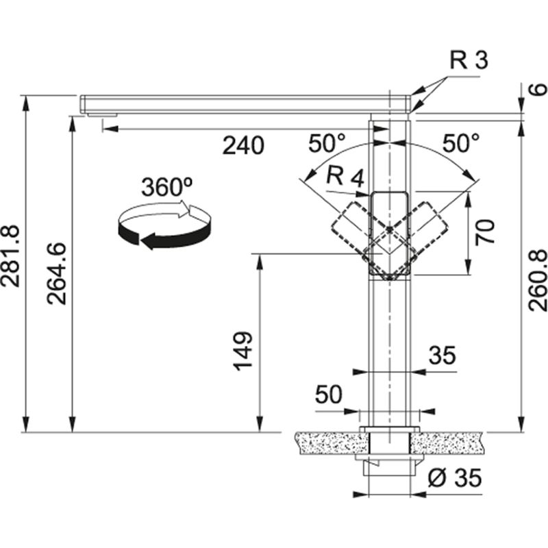 Festauslauf Variante ist mit einem Laminar Perlator für den klaren Wasserstrahl ausgestattet
