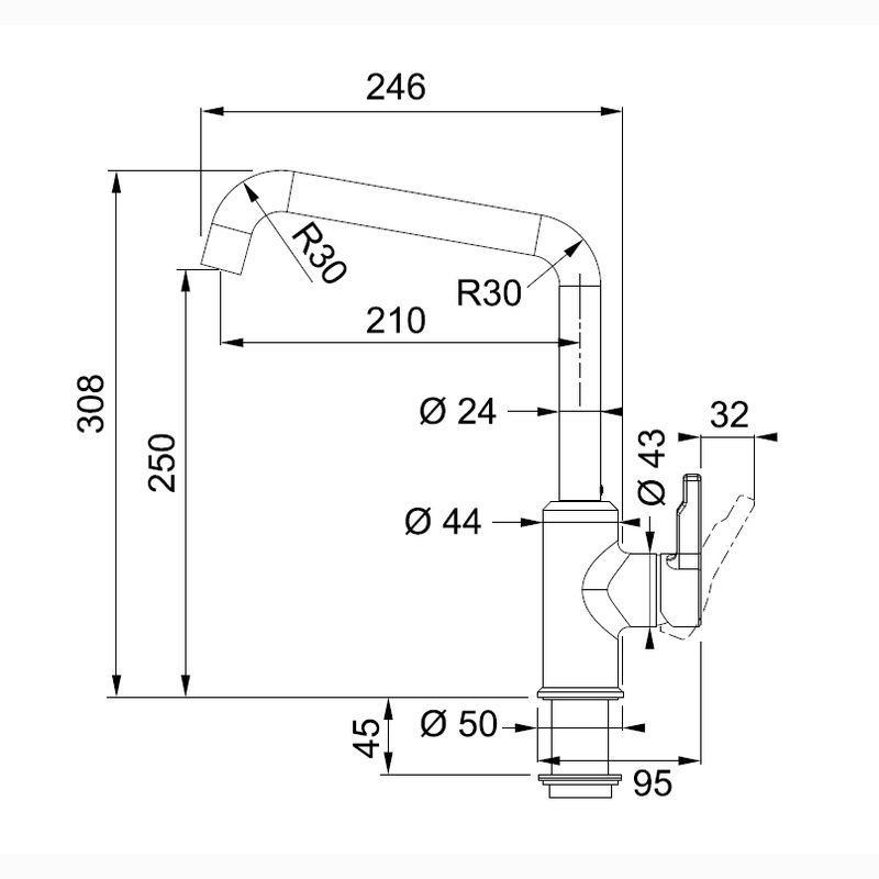Hoher Auslauf für komfortables Befüllen von Töpfen