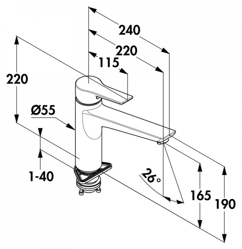 Einhebelmischer. Mit schwenkbarem Auslauf, geschlossenem Hebel und Keramikkartusche mit Heißwasserbegrenzung.