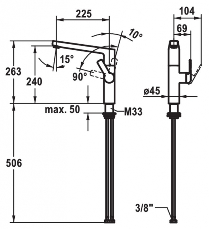 Einhebelmischer. Mit schwenkbarem Auslauf, seitlichem Hebel und Keramikkartusche.