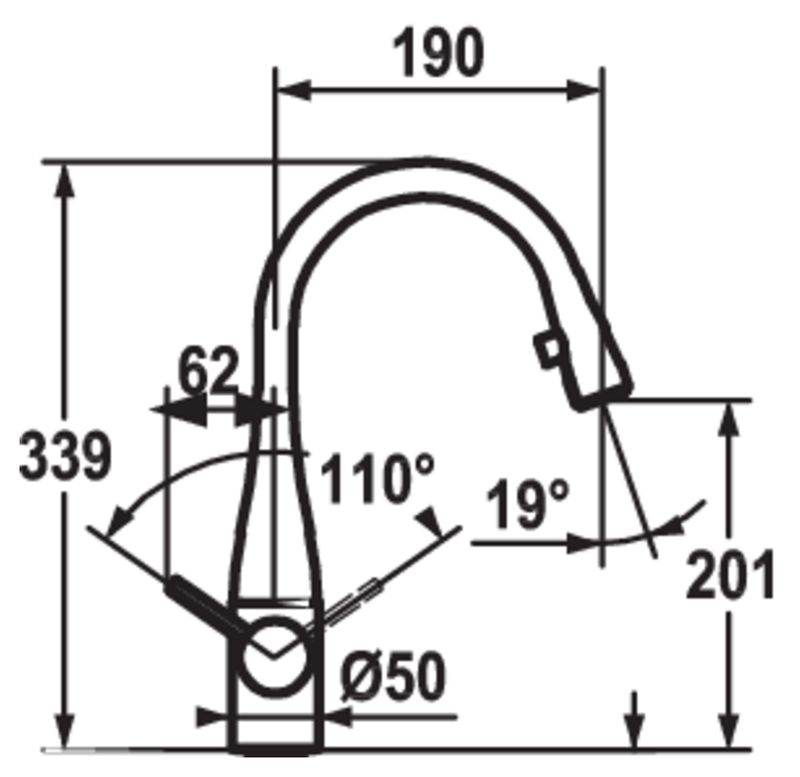 Einhebelmischer. Mit schwenkbarem Auslauf, seitlichem Hebel und Keramikkartusche.