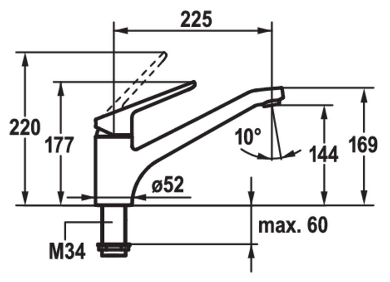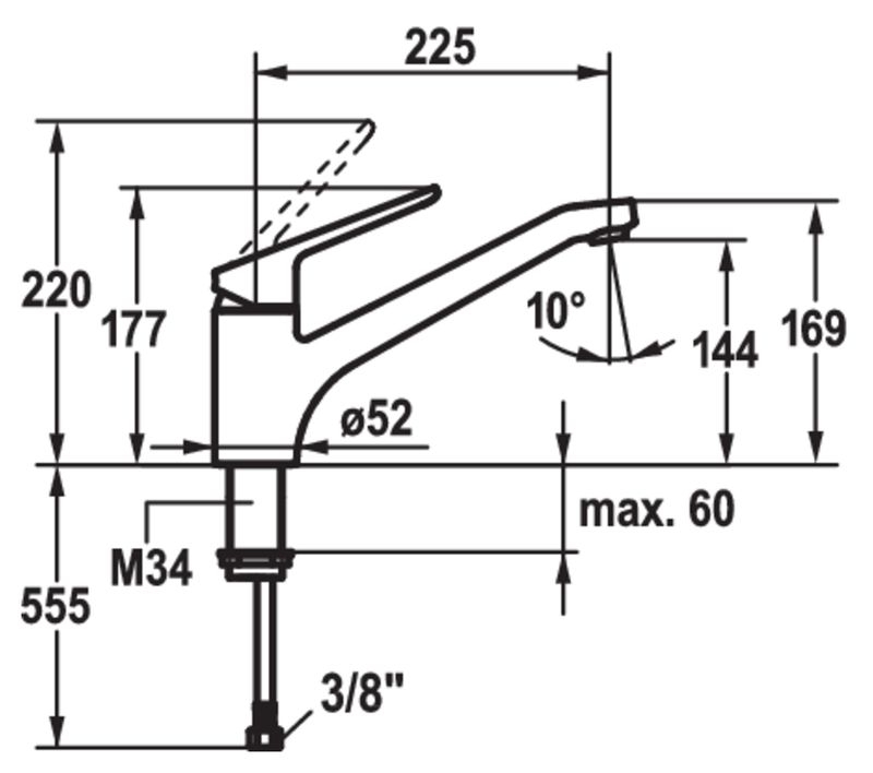 Einhebelmischer. Mit schwenkbarem Auslauf und Keramikkartusche.