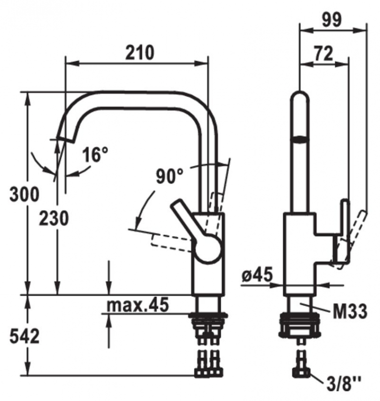 Einhebelmischer. Mit schwenkbarem Auslauf, seitlichem Hebel und Keramikkartusche.
