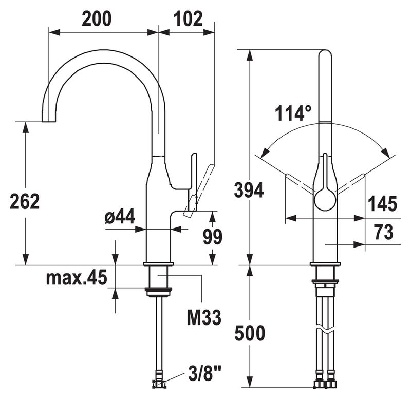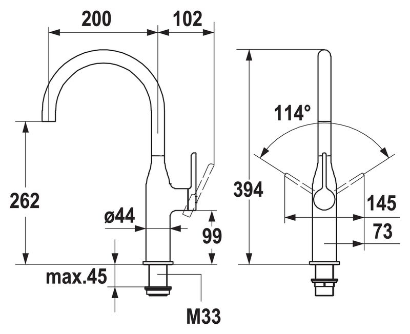 Einhebelmischer. Mit schwenkbarem Auslauf, seitlichem Hebel und Keramikkartusche.