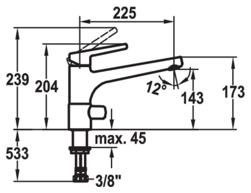 Einhebelmischer. Mit schwenkbarem Auslauf, Keramikkartusche und Anschluss für Spül- oder Waschautomat.