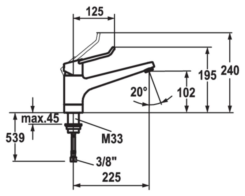 KWC Vita Pro 1, Einhebelmischer chrom, Hochdruck, mit kurzem Hebel L 125 mm