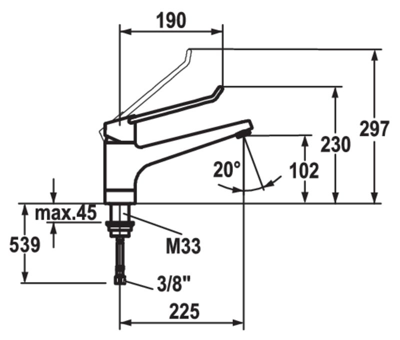 mit langem Hebel L 190 mm