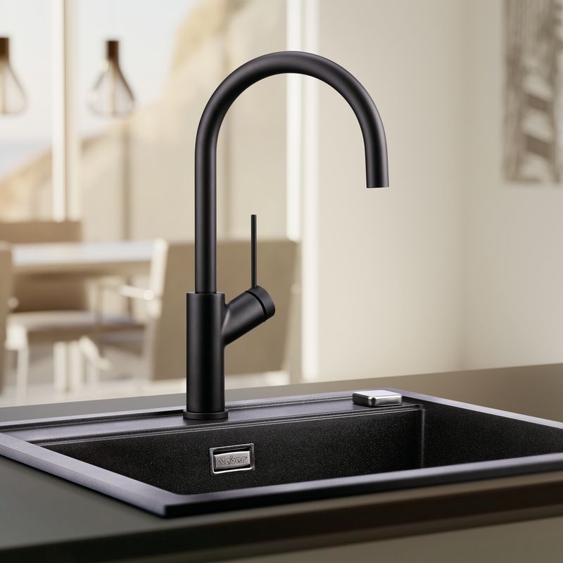 Einhebelmischer mit schwenkbarem Auslauf, seitlichem Hebel und Keramikkartusche