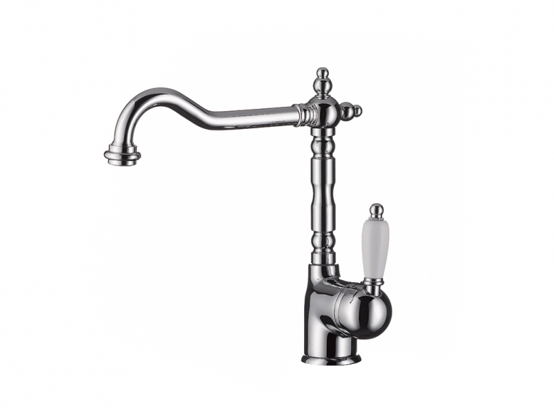 Einhebelmischer mit schwenkbarem Auslauf, seitlichem Hebel in weiß und Keramikkartusche