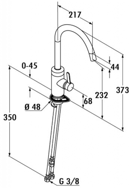 Einhebelmischer mit schwenkbarem Auslauf, seitlichem Hebel und Keramikkartusche