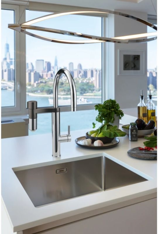 Franke Vital Festauslauf Einhebelmischer mit Filter, Hochdruck, Chrom-Gun Metal