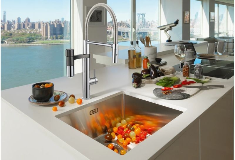 Franke Vital Semi-Pro Brause Einhebelmischer mit Filter, Hochdruck Schlauchbrause, Chrom-Gun Metal