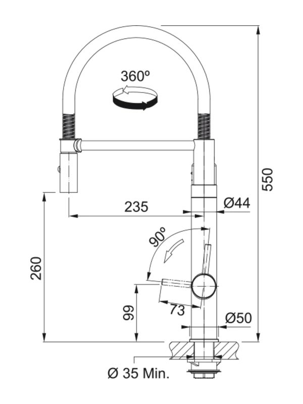 ACHTUNG: Die Armatur muss bei der Installation, bevor der Filter eingesetzt wird, durchgespült werden