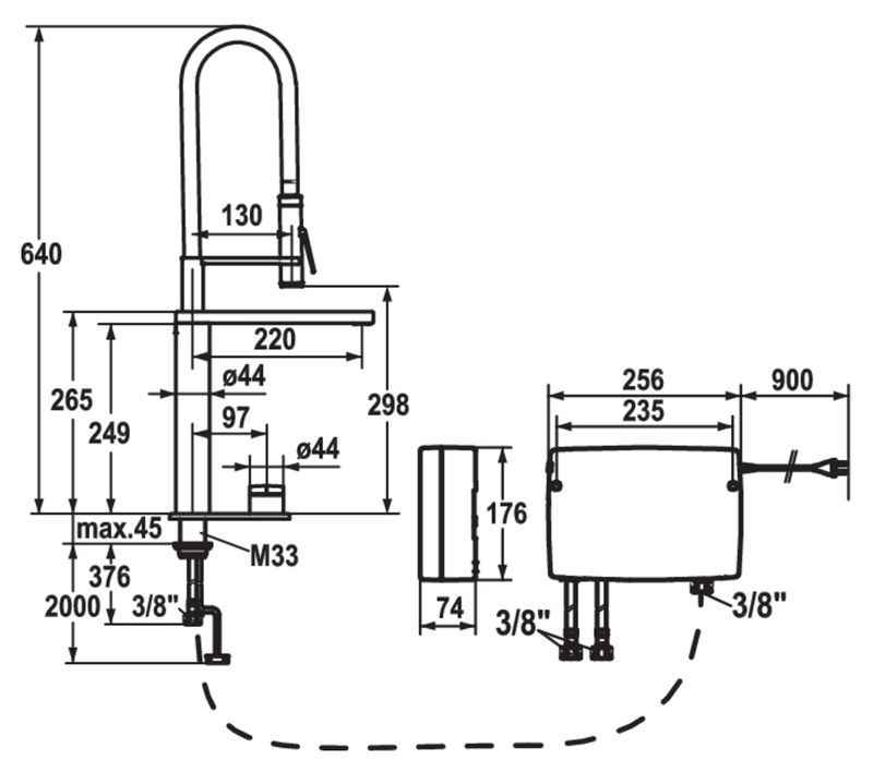 Inkl. elektronischer Steuerung durch touch-light-Pro-Technologie. Drei voreingestellte Temperaturen und Durchflussmengen.