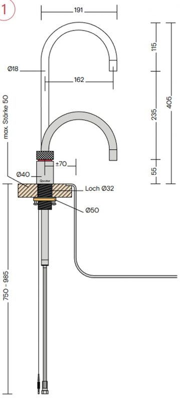 Nordic Single Tap ist ein Kochend-Wasserhahn, der ausschließlich kochendes Wasser liefert. Er kann auf der Arbeitsplatte neben dem vorhandenen Hahn eingebaut werden. Damit stehen Ihnen zwei Hähne zur Verfügung: einen separaten Quooker-Hahn für kochendes Wasser und eine herkömmliche Mischbatterie für kaltes und warmes Wasser.