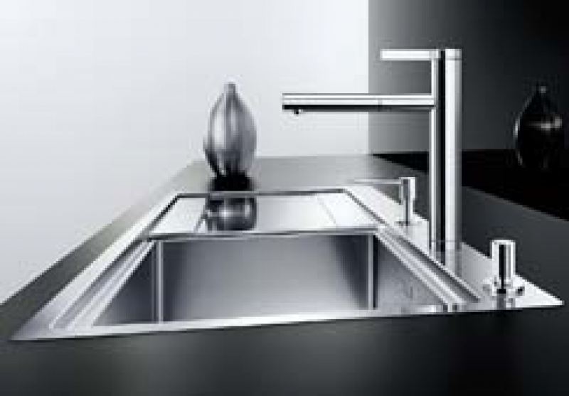 Blancoetagon 6 Etagen-Becken, Silgranit® PuraDur® II, Farbe anthrazit , Ablaufsystem InFino®, mit Zugknopffernbedienung, integrierte Stufe, Schneidbrett optional, Etagon-Schienen, 60 cm