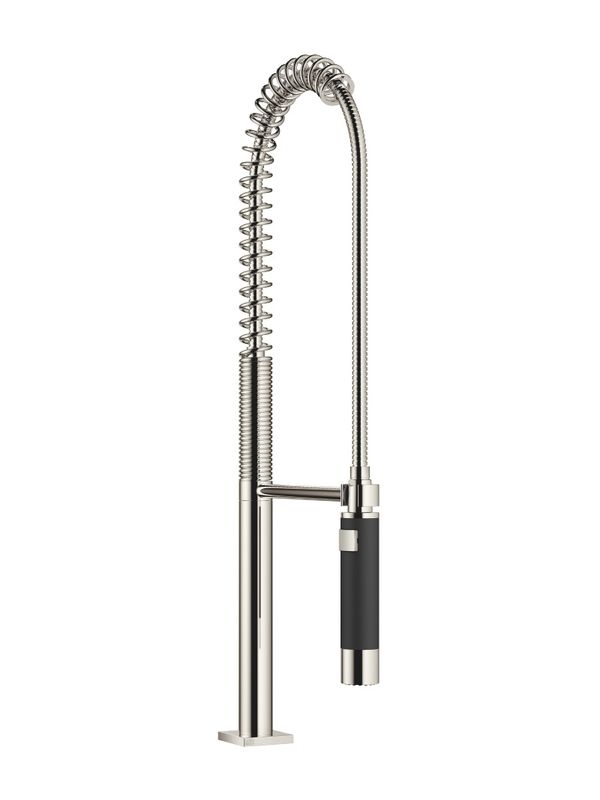 Mit der Profi-Brausegarnitur von Dornbracht verfügen Sie über eine zusätzliche Armatur, mit der Sie vom normalen Auslaufstrahl auf einen Brausestrahl umschalten können. Diese Spiralfederamatur vergrößert dank des Pendelarms den Aktionsradius und erleichtert damit die tägliche Arbeit am wichtigsten Arbeitsplatz in der Küche. Wer mehr Komfort bei der Küchenarbeit wünscht, erhält von der Dornbracht-Profiarmatur somit die perfekte Unterstützung.