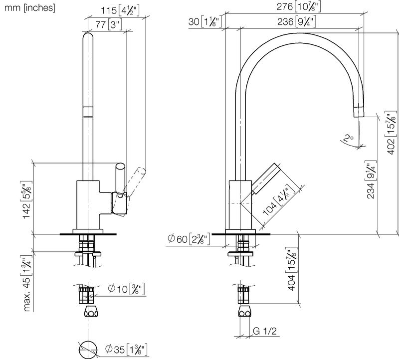 Ausstattung der Dornbracht Tara-classic Küchenarmatur: