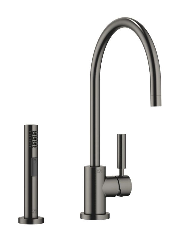 Dornbracht Tara Classic Einhebelmischer + Spülbrausegarnitur, Hochdruck, Dark Platinum gebürstet, 33826888-99+27721970-99