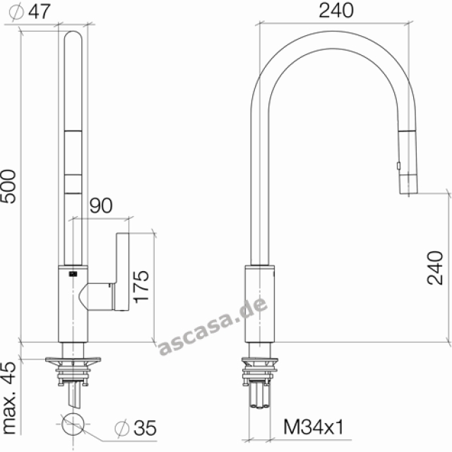 Dornbracht Tara Ultra Pivot Einhebel-Mischbatterie, Hochdruck, Chrom, schwenkbarer Auslauf 360°, mit keramischen Scheiben, frei von Schwermetallen, 33845875-00