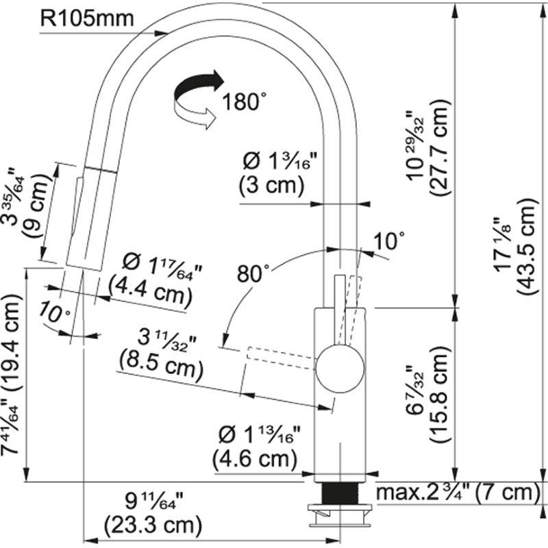 Auslaufmenge Normalstrahl: 7,5 l / min. Brausestrahl. 6,7 l/min (3 bar)