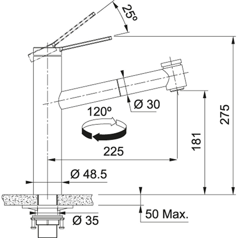Auslaufmenge Normalstrahl: 8 l / min. (3 bar)