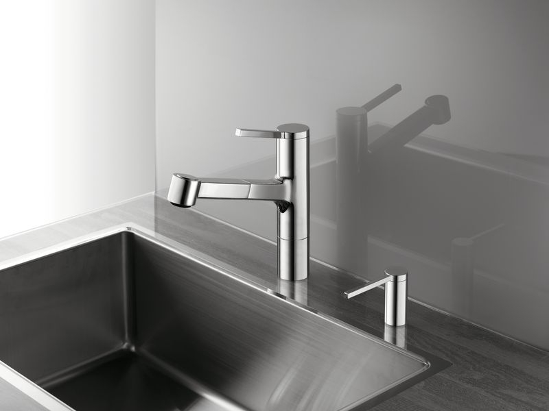 Einhebelmischer. Mit schwenk-/herausziehbarer Schlauchbrause (Strahl/Brause umstellbar) und Keramikkartusche.