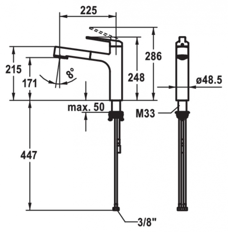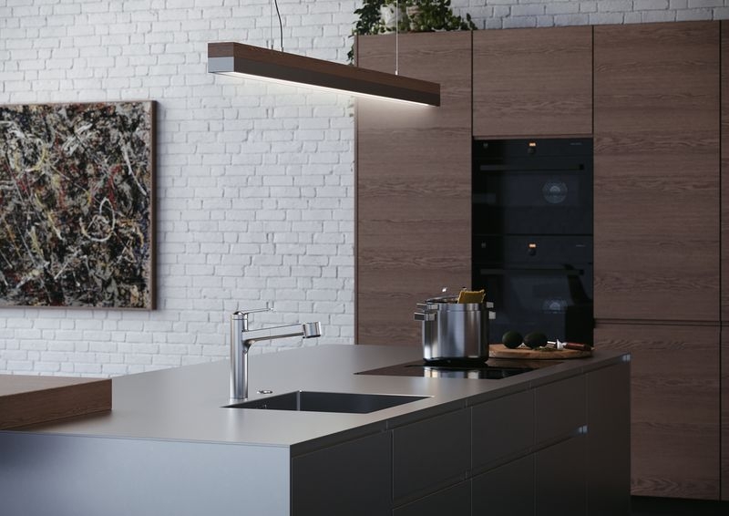 Einhebelmischer. Mit schwenk-/herausziehbarer Schlauchbrause (Strahl/Brause umstellbar) und Keramikkartusche.