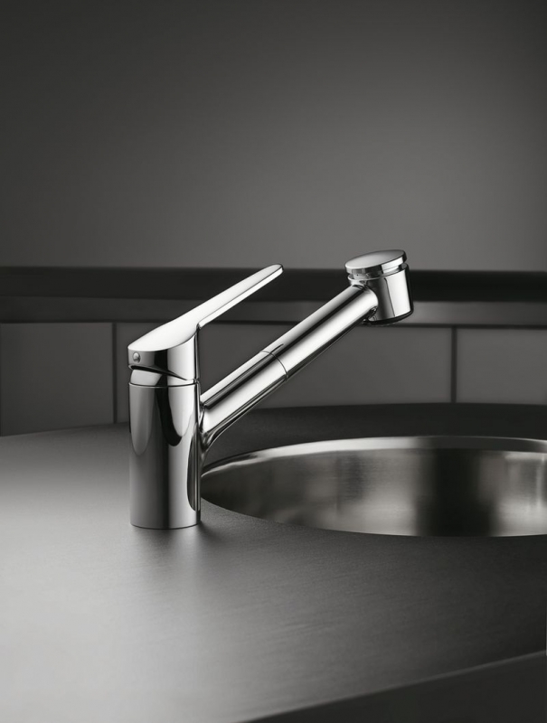 Einhebelmischer. Mit schwenk-/herausziehbarer Schlauchbrause (Strahl/Brause umstellbar) und Keramikkartusche.