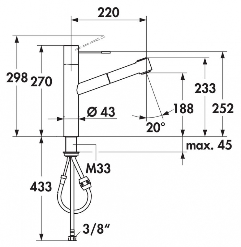 Einhebelmischer. Mit schwenk-/herausziehbarer Schlauchbrause (Strahl/Brause umstellbar) und Keramikkartusche.