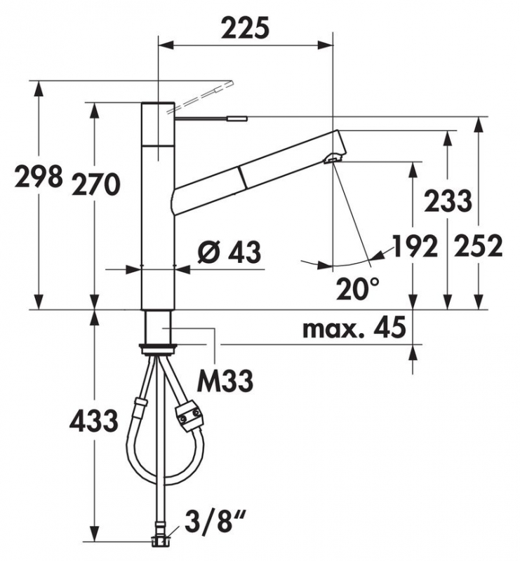 KWC Ono 8, Einhebelmischer Edelstahl, Hochdruck Schlauchbrause