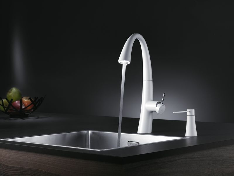Premium-Lifestyle Armatur mit scheinbar unsichtbar in den Auszugauslauf integriertem LED-Lichtring