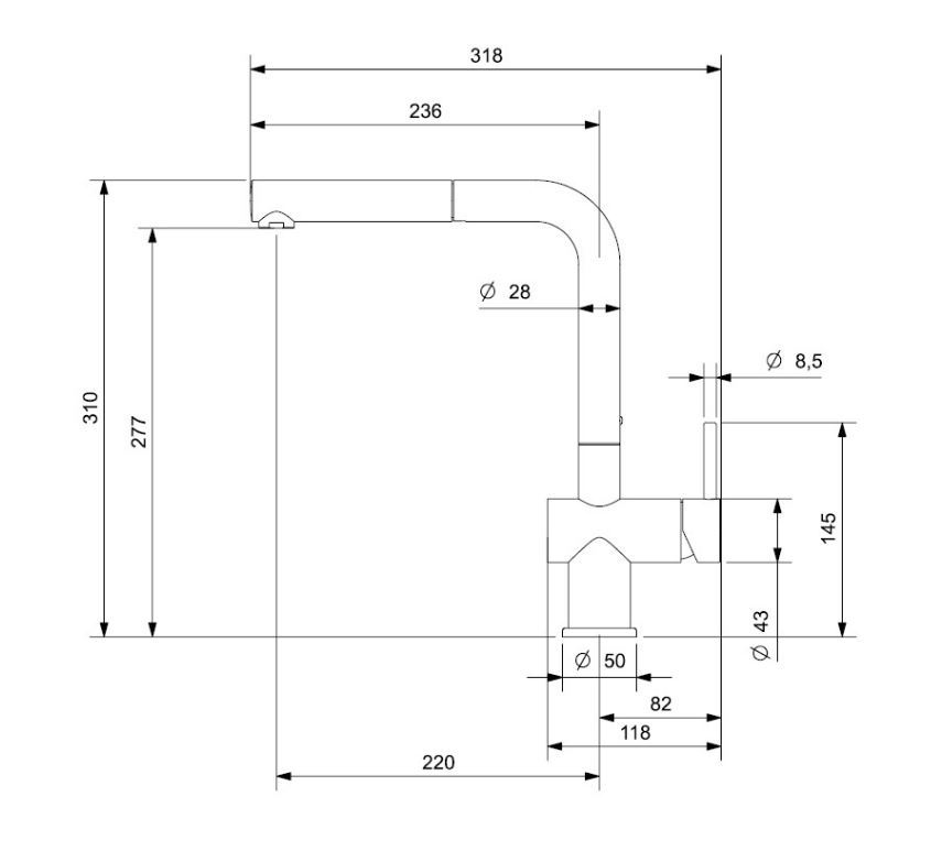 Spültisch Einhandmischer mit ausziehbarem Auslauf