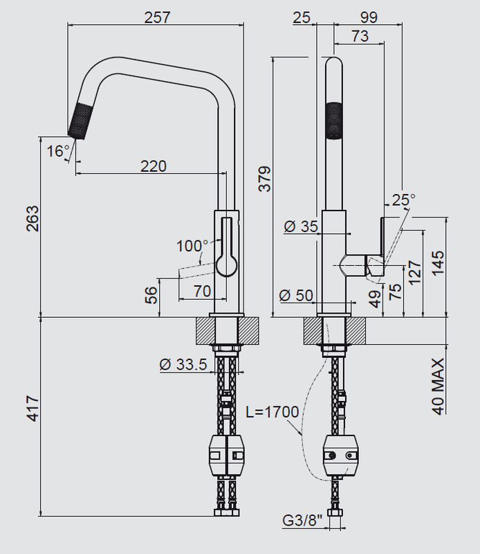 Systemceram KeraDomo OFFEO, Einhebelmischer mit Zugauslauf, Hochdruck, 18733, Farbe Schwarz