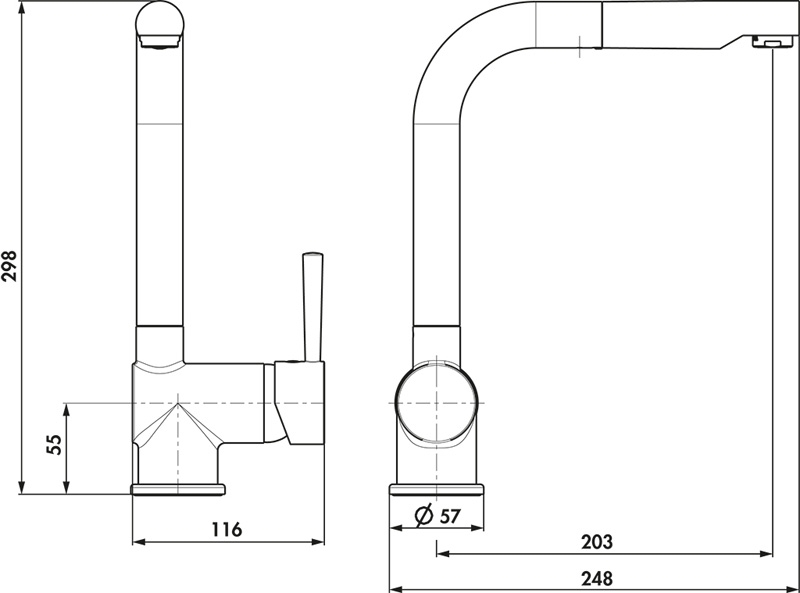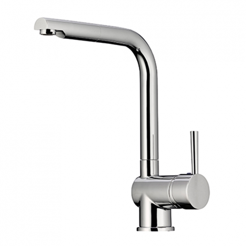 Niederdruck-Einhebelmischer. Mit schwenkbarem Auslauf, seitlichem Hebel und Keramikkartusche