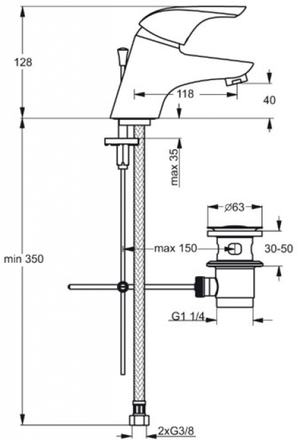 Waschtisch-Einhebelmischer mit Zugknopf-Ablaufgarnitur 1 1/4"