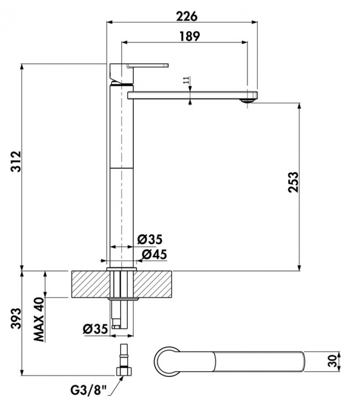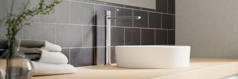 Einhebelmischer. Mit Keramikkartusche. Besonders geeignet für den Einsatz mit Aufsatzwaschbecken.